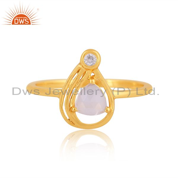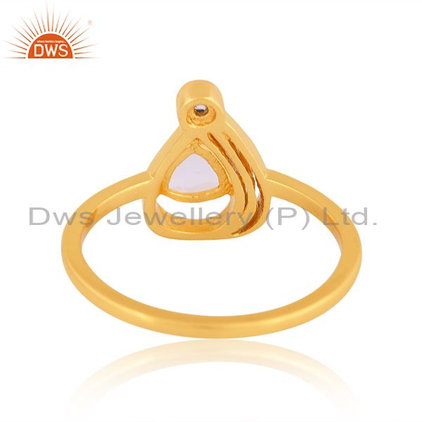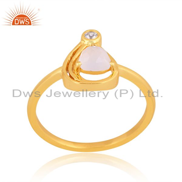 Cz And Trillion Cut Rainbow Moon Stone Gold On Silver Ring
