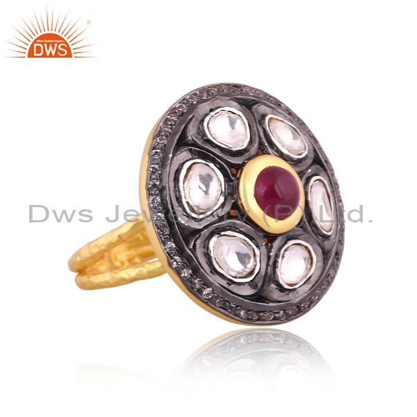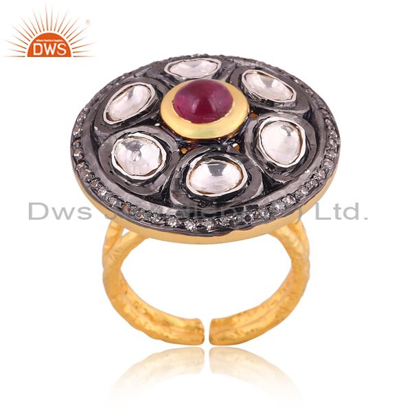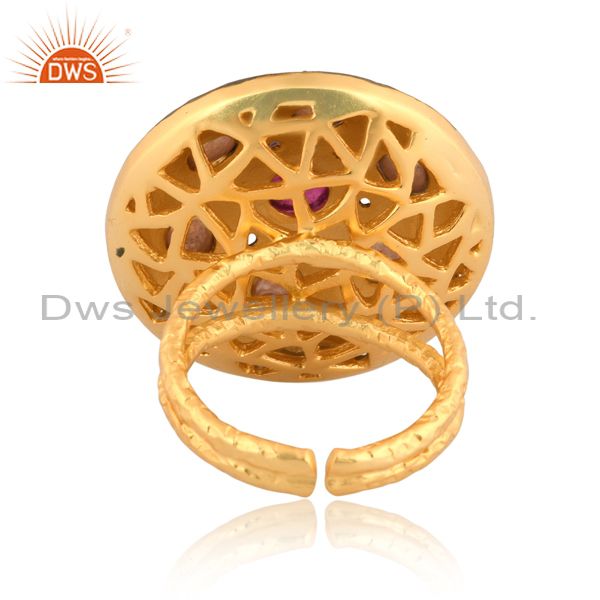 CZ, Crystal Quartz, Pink Tourmaline Set Gold On Silver Ring