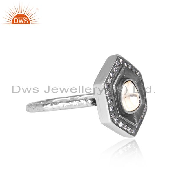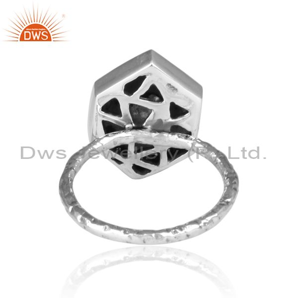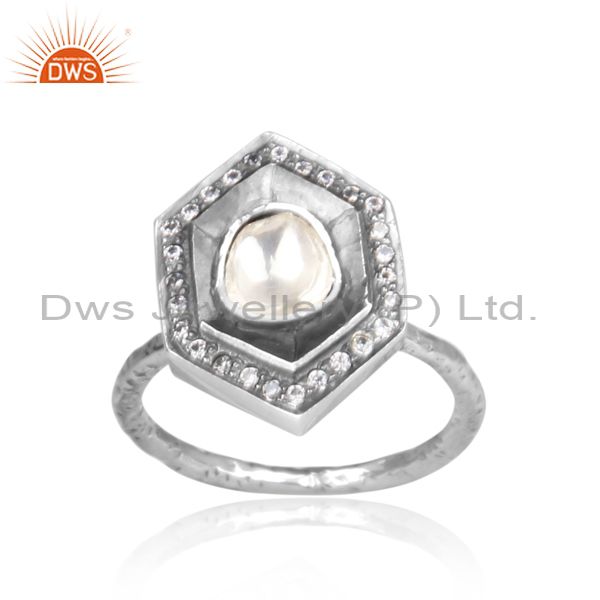 CZ, Crystal Quartz Set Oxidized Silver Hexagon Shaped Ring
