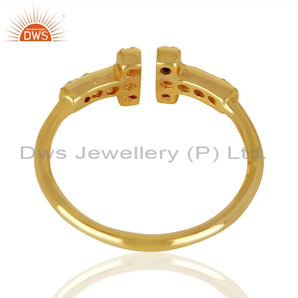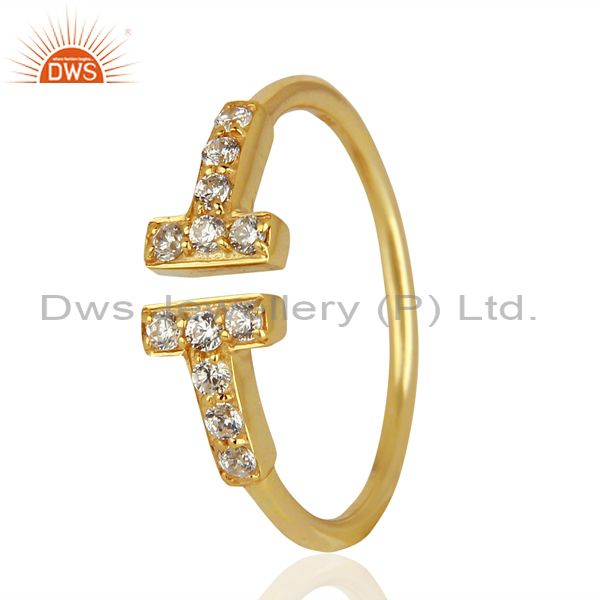 Cz Double Cross Curved Bar 925 Sterling Silver 14K Gold Plated Ring Jewellery