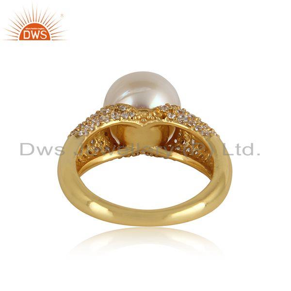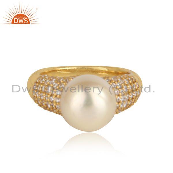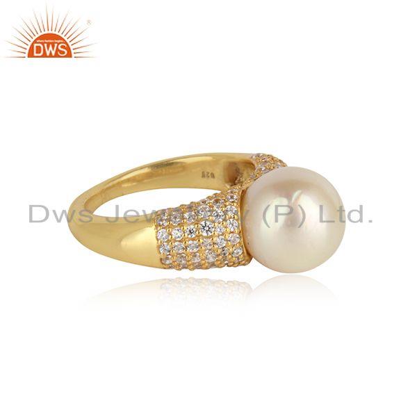 Cz Natural Pearl Gemstone Designer 18K Gold Plated Silver Rings