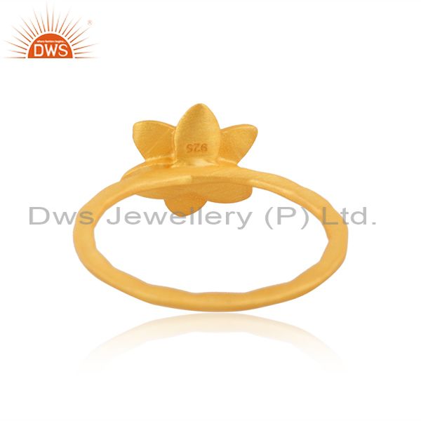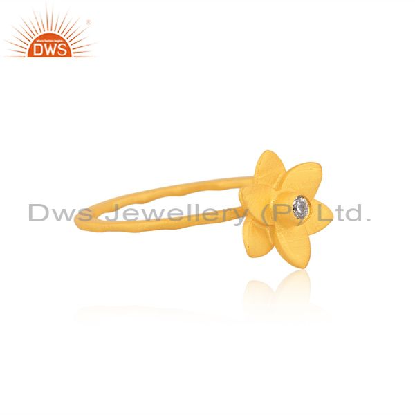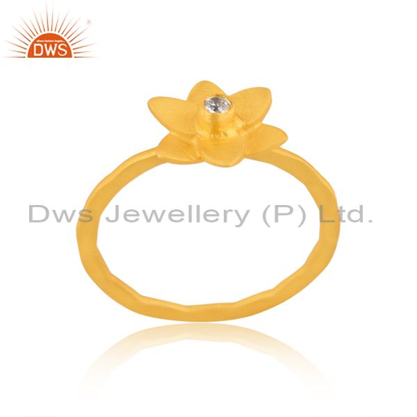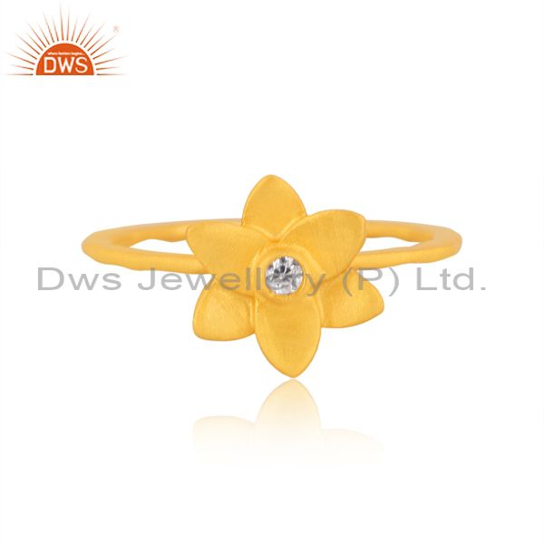 CZ Set Gold On Sterling Silver Floral Crown Designer Ring