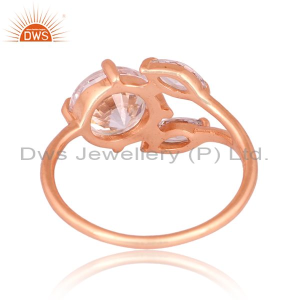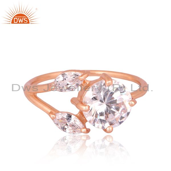 Cz Sterling Silver Rose Gold Plated Adjustable Floral Ring
