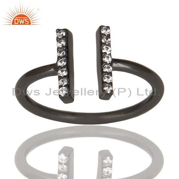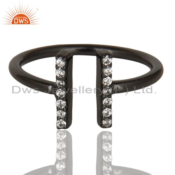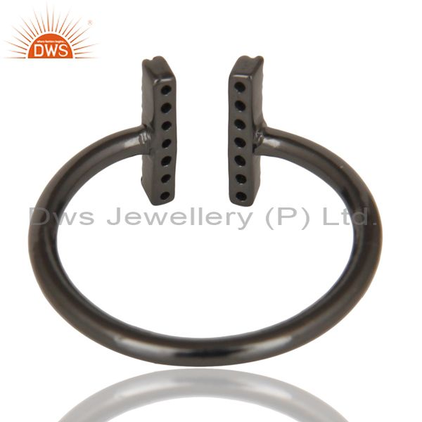 Cz Studded Parallel Ring Openable Parallel Ring Black Rhodium 92.5 Silver Ring