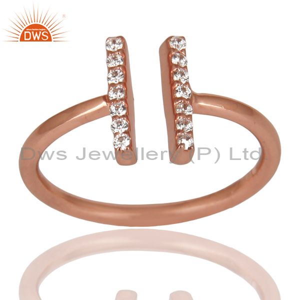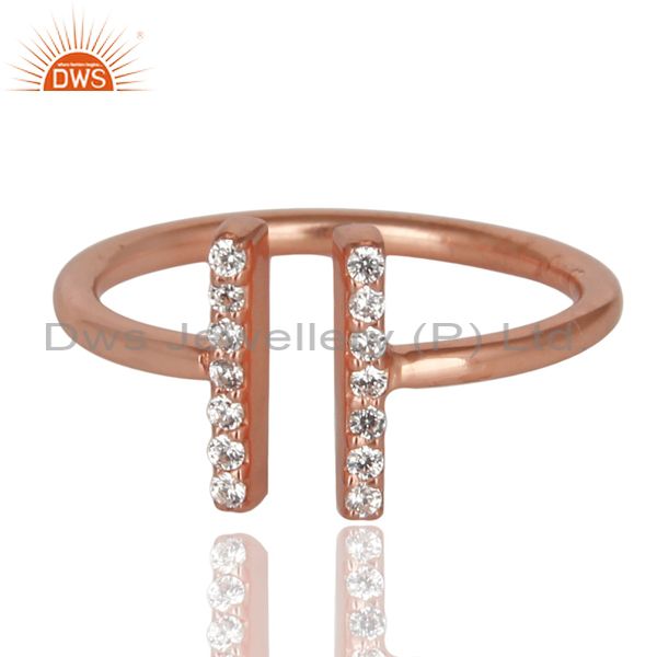 Cz Studded Parallel Ring Openable Parallel Ring Rose GoldPlated 92.5 Silver Ring