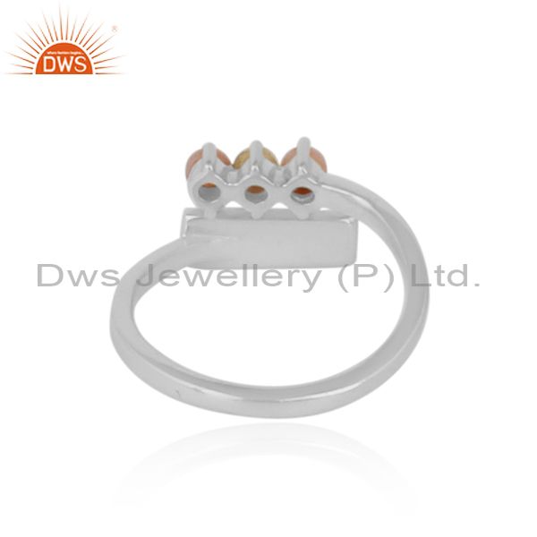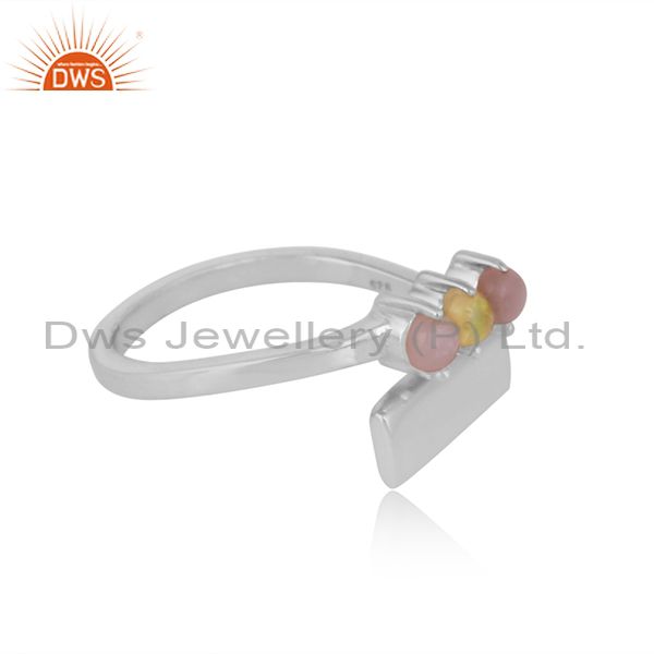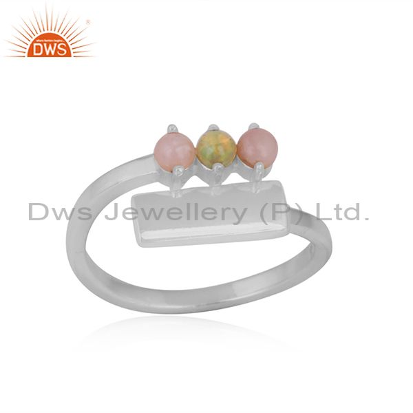 Dainty Bar Bypass Sterling Silver Ring With Pink And Ethiopian Opal