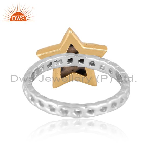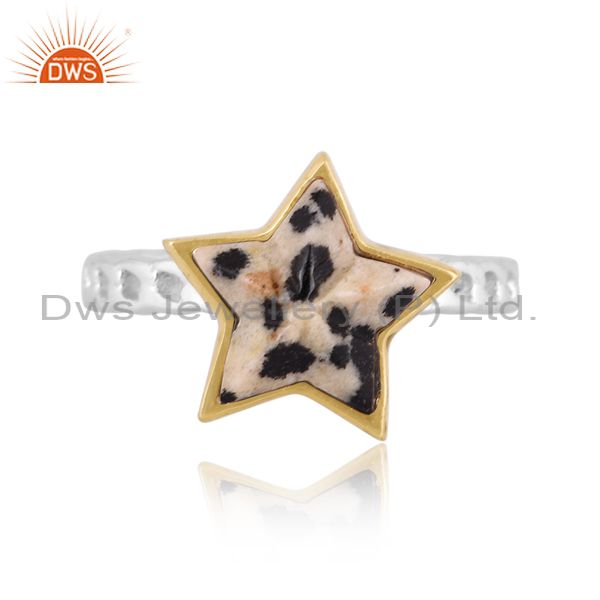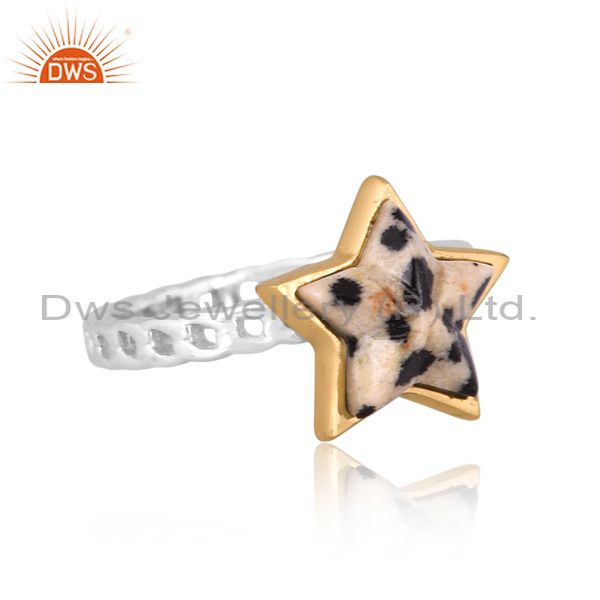 Dalmation Jasper Set Gold On Fine Silver Classic Star Ring