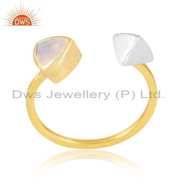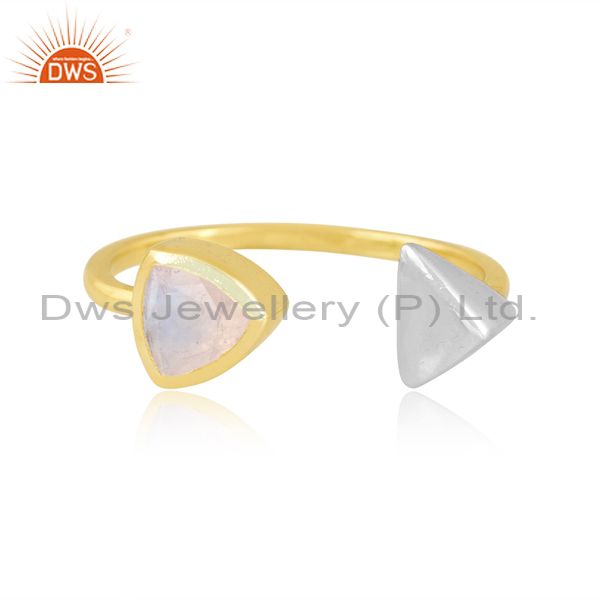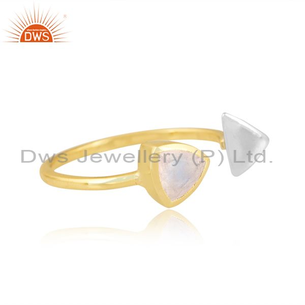 Dazzling Brass Gold And White Rainbow Moonstone Cut Ring