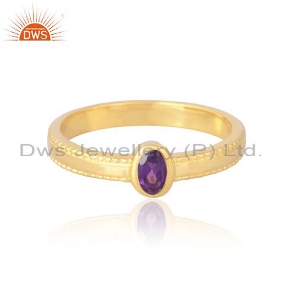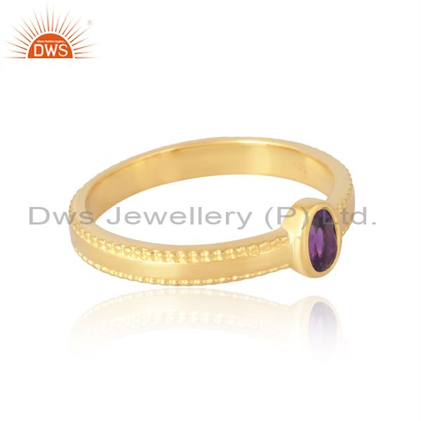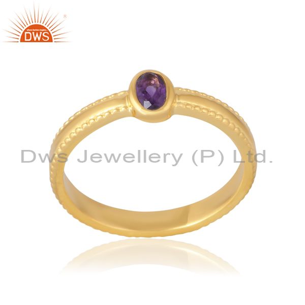 Delicate Sterling Silver 18K Gold Oval Cut Amethyst Ring