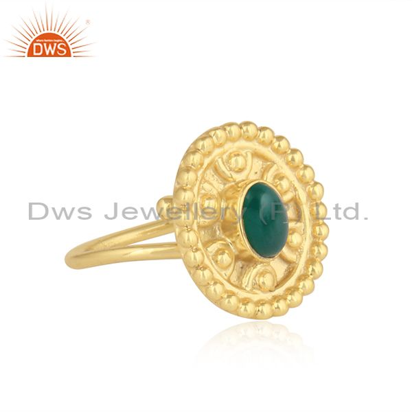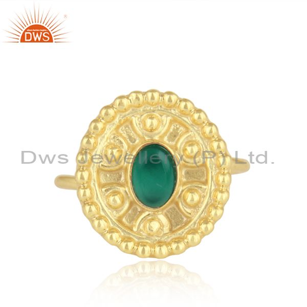 Designer 18k Gold Plated 925 Silver Green Onyx Gemstone Rings