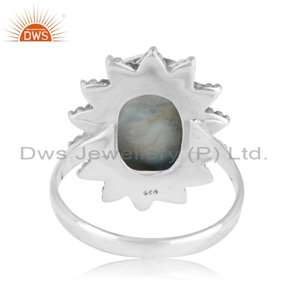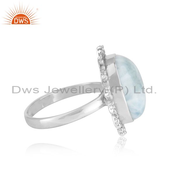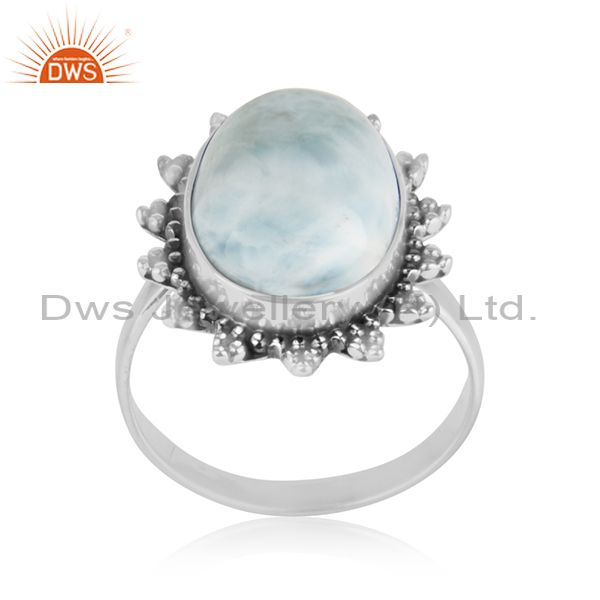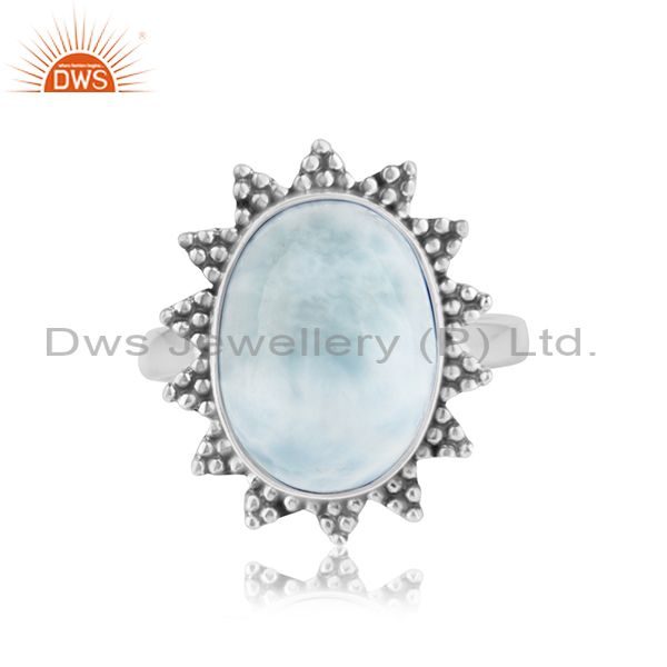 Designer 925 Sterling Oxidized Silver Larimar Gemstone Cocktail Ring Manufacture