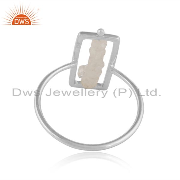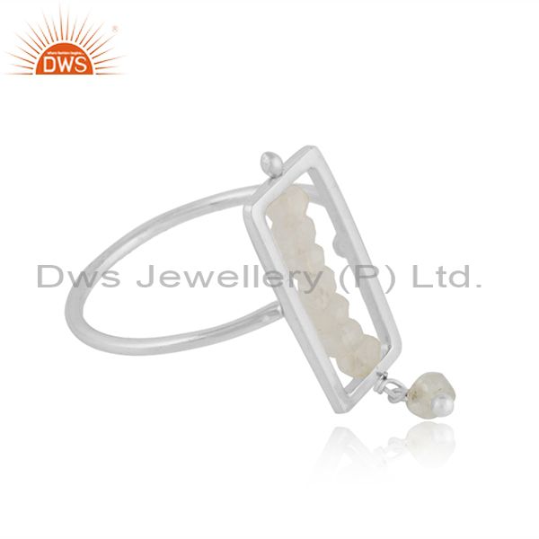 Designer 925 Sterling Silver Beaded Rainbow Moonstone Gemstone Ring