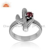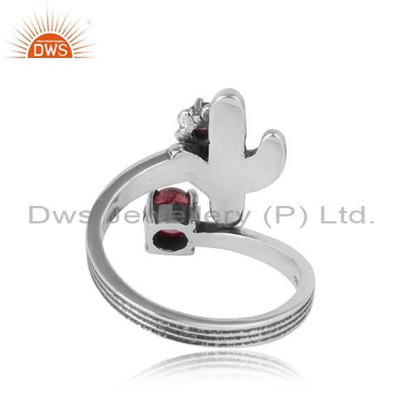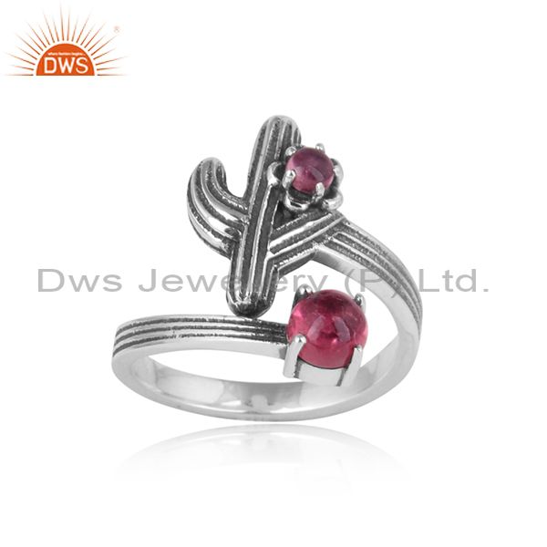 Designer Cactus Bypass Silver Oxidized Ring with Pink Tourmaline