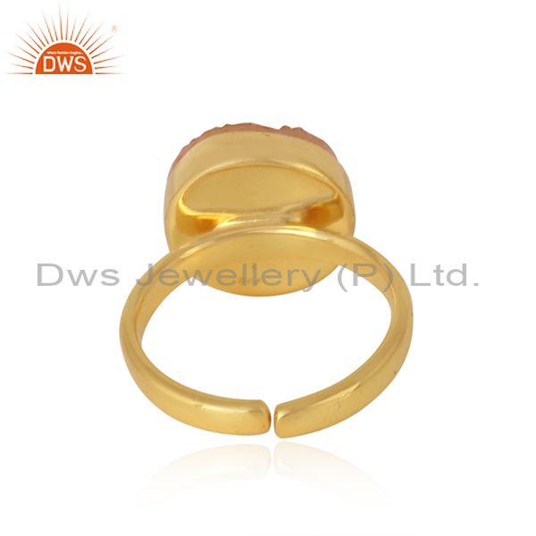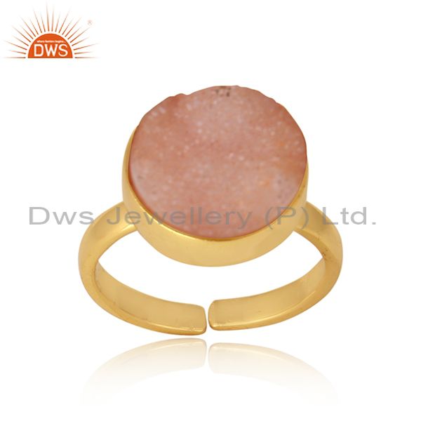 Designer Elegant Orange Druzy Ring in Yellow Gold on Silver 925