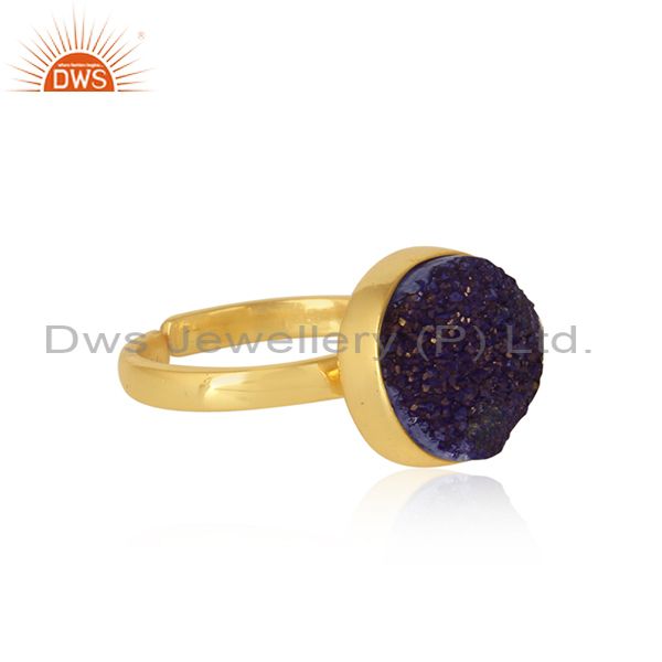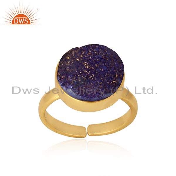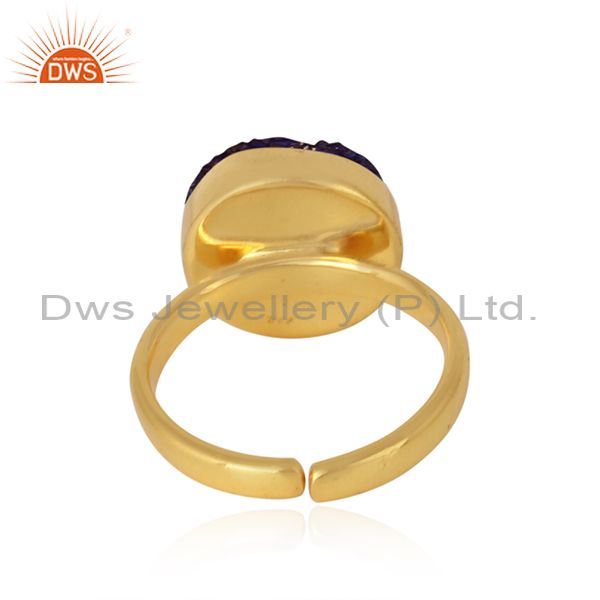 Designer Elegant Purple Druzy Ring in Yellow Gold on Silver 925