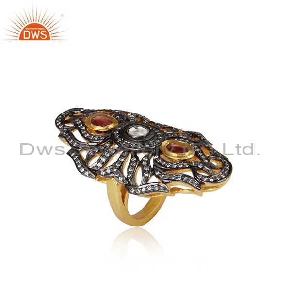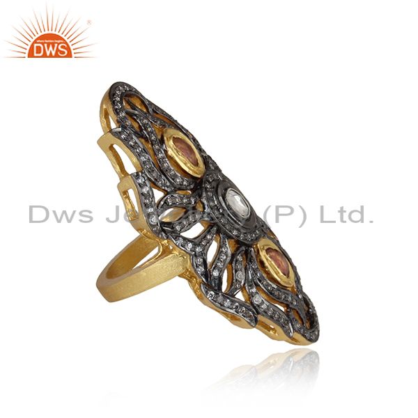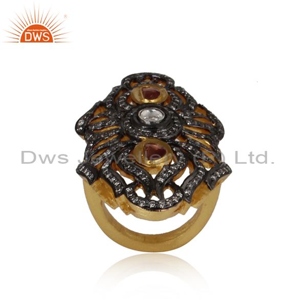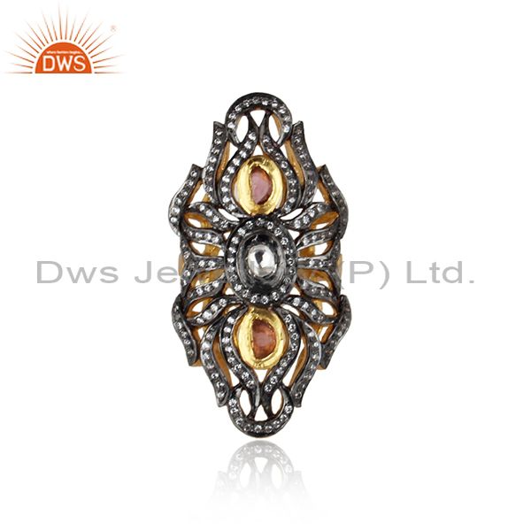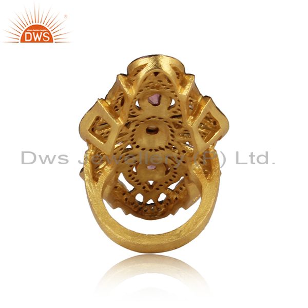 Designer Gold on Silver 925 Ring with PinkTourmaline, Crystal, Cz