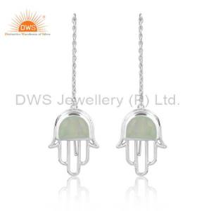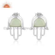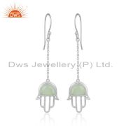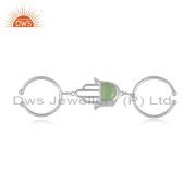 Designer Hamsa Hand Lucky Charm Silver Prehnite Chalcedony Ring