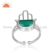 Designer Hamsa Hand Lucky Charm Sterling Silver Green Onyx Ring