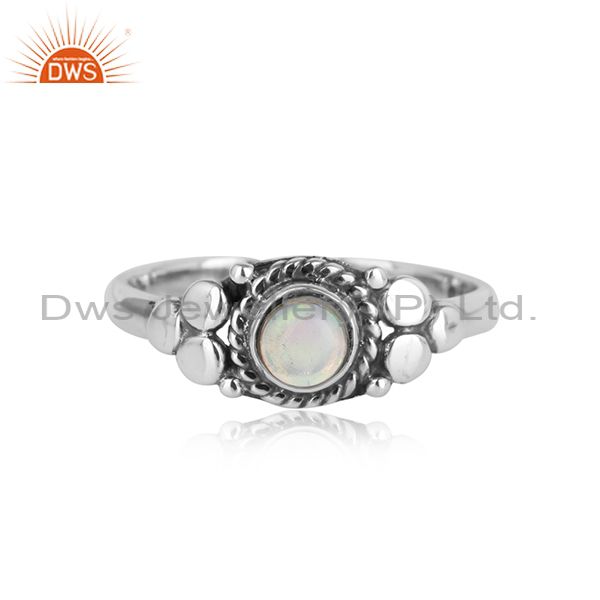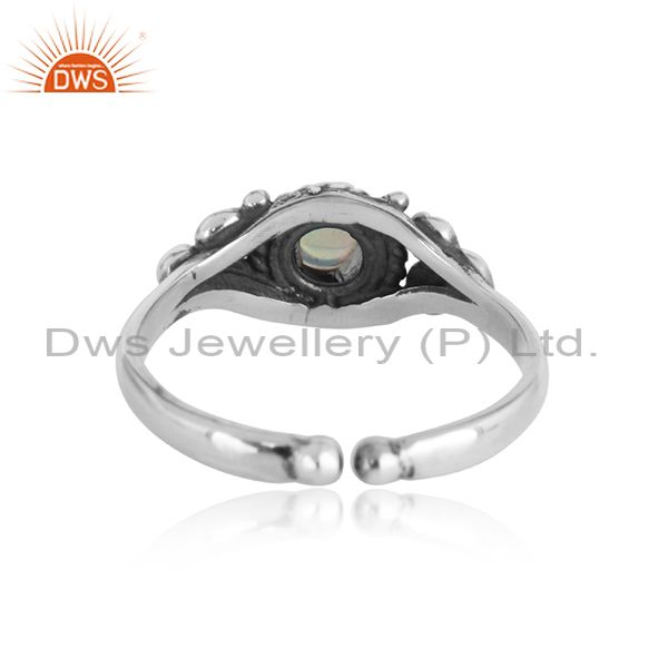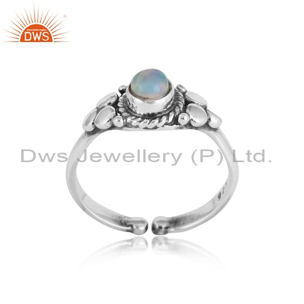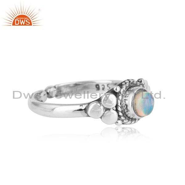 Designer Handmade Dainty Ring in Oxidized Silver and Ethiopian Opal