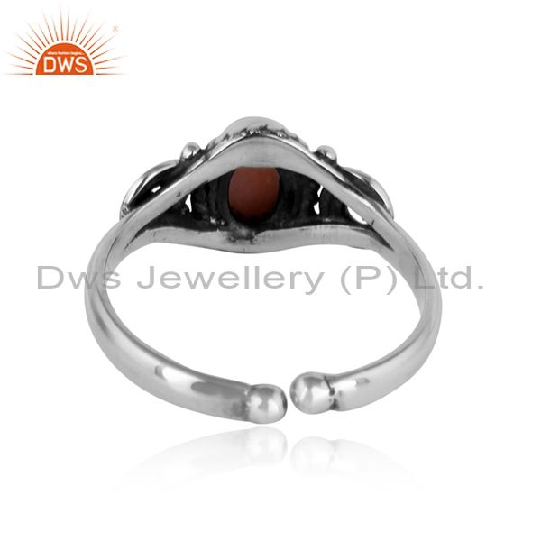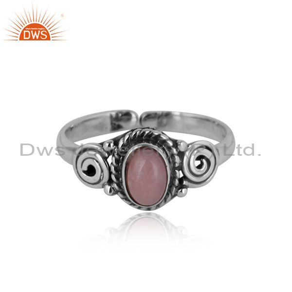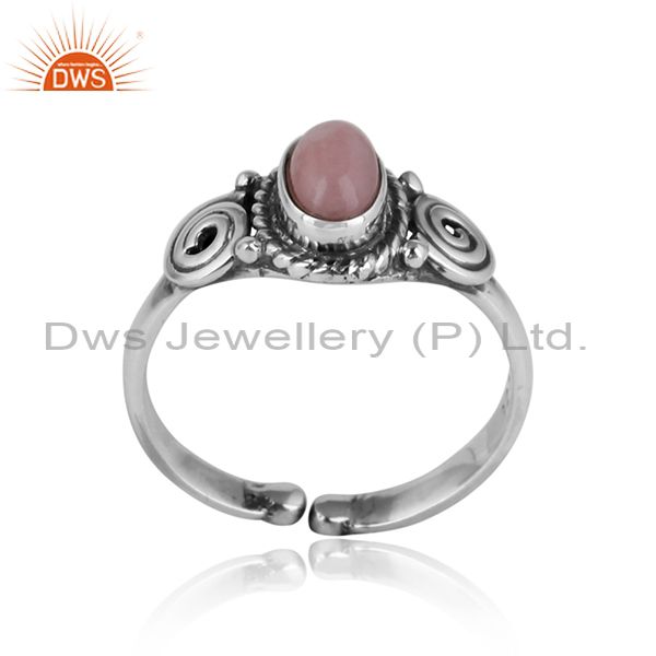 Designer Handmade Dainty Ring in Oxidized Silver and Pink Opal
