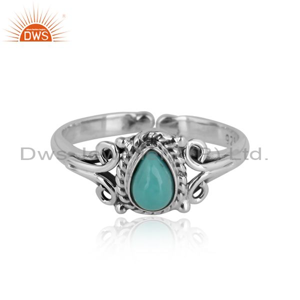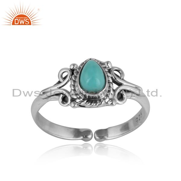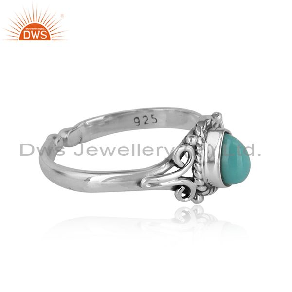 Designer Handmade Dainty Ring in Oxidized Silver Arizona Turquoise