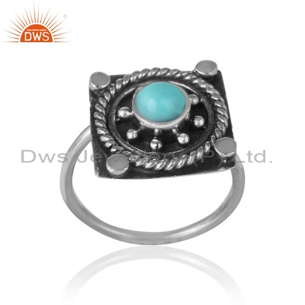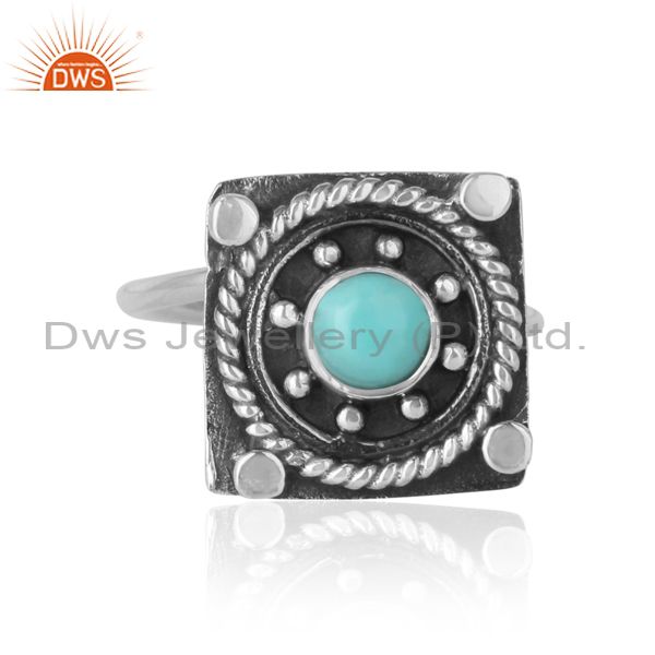 Designer Handmade Ring in Oxidized Silver and Arizona Turquoise