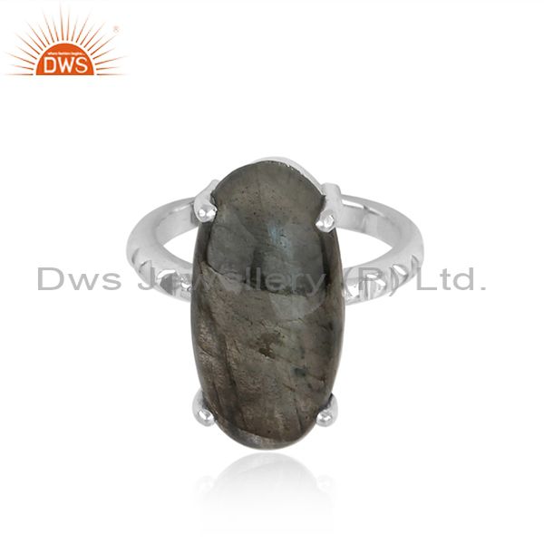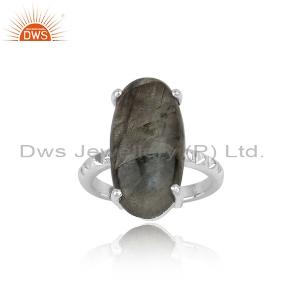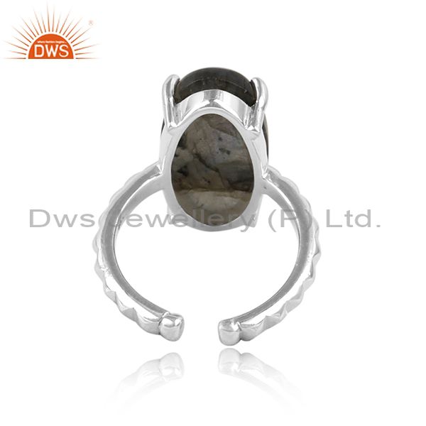 Designer Handtextured Bold Sterling Silver Ring with Labradorite