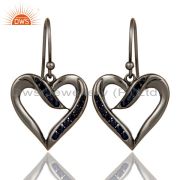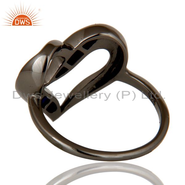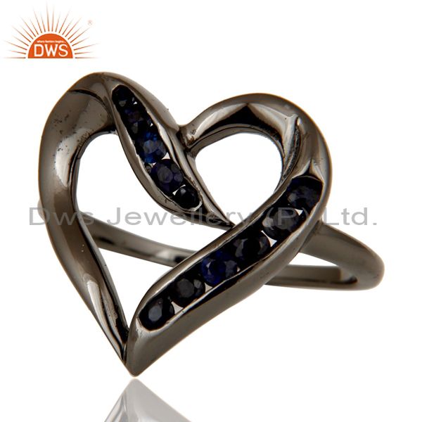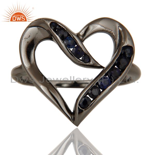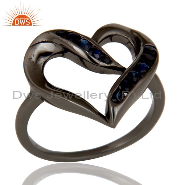 Designer Heart Ring with Blue Sapphire and Oxidized Sterling Silver