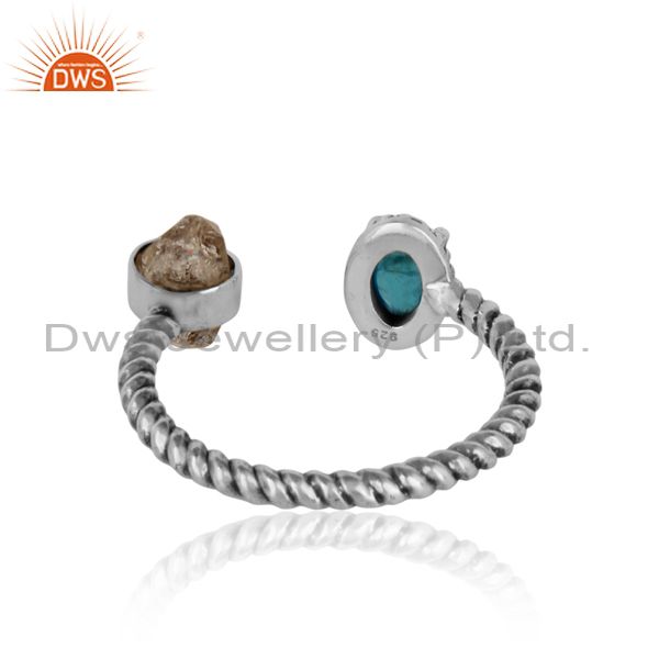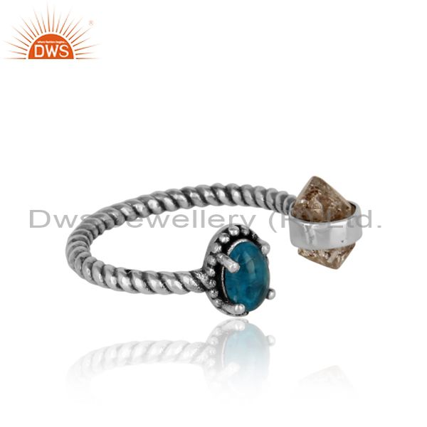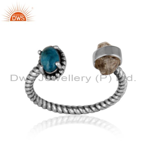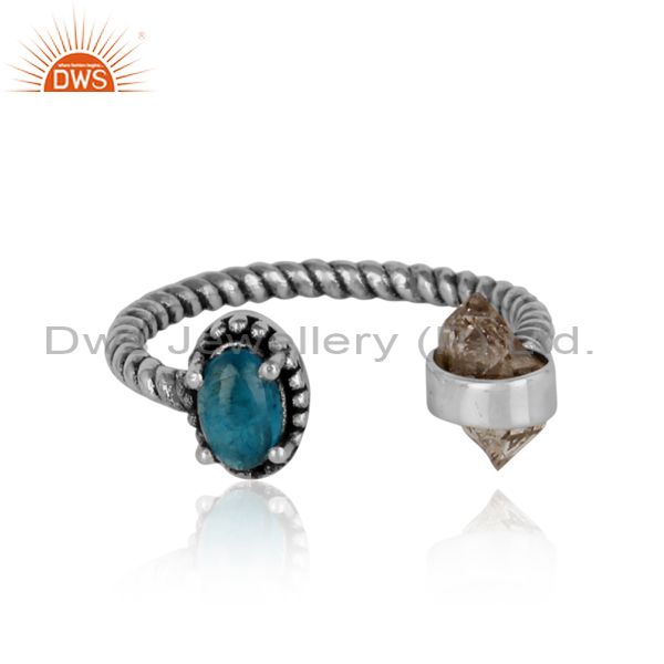 Designer Herkimer Diamond Ring In Oxidized Silver With Neon Apatite