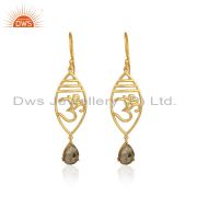 Designer Om Symbol Ring in Yellow Gold on Silver 925 and Pyrite
