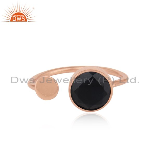 Designer Rose Gold Plated 925 Silver Black Onyx Gemstone Ring Jewelry