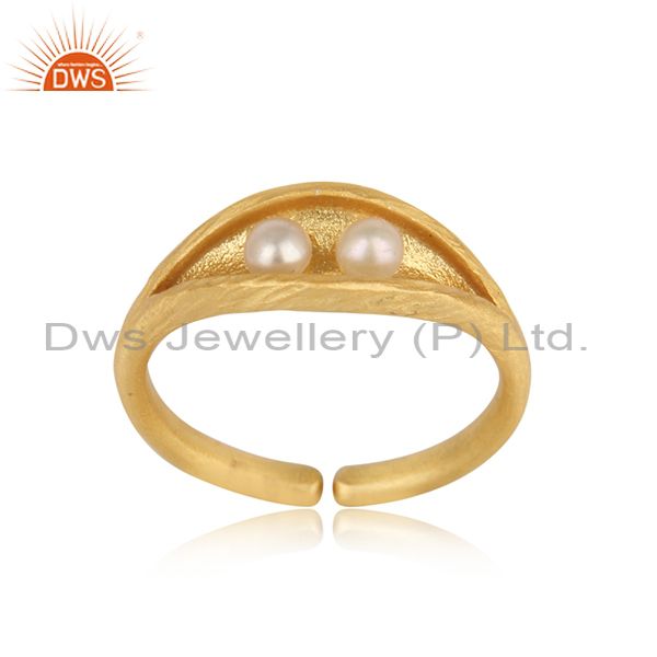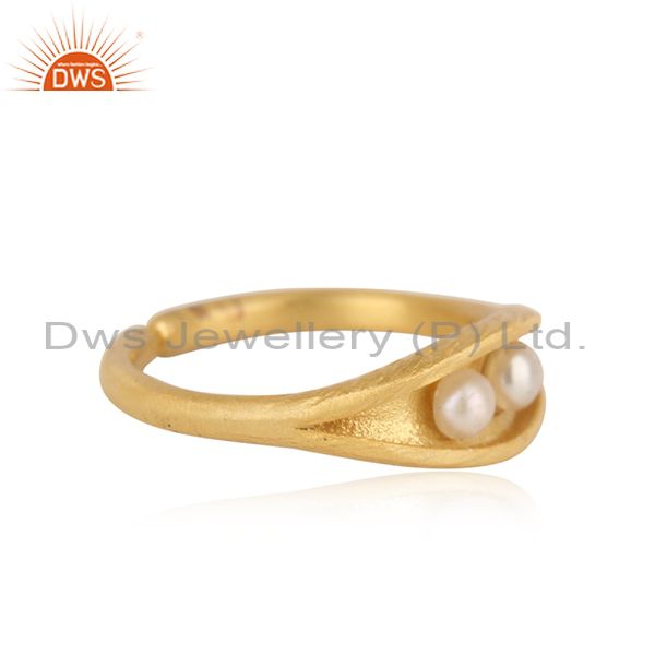 Designer Seedpod Dainty Ring in Yellow Gold on Silver and Pearl