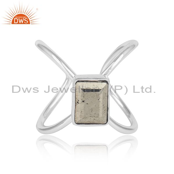 Designer Shank Handmade Fine Silver 925 Ring with Pyrite