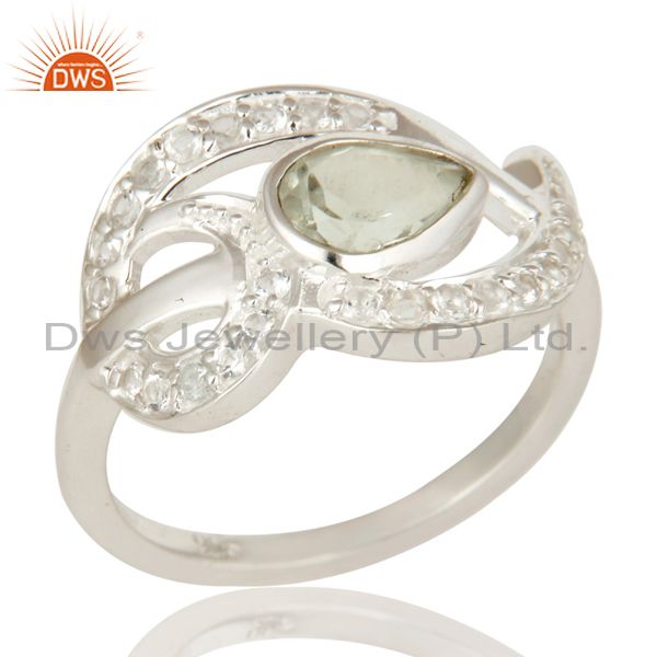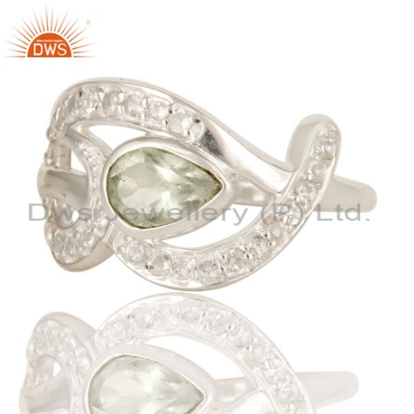 Designer Sterling Silver Green Amethyst And White Topaz Gemstone Dome Ring