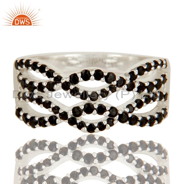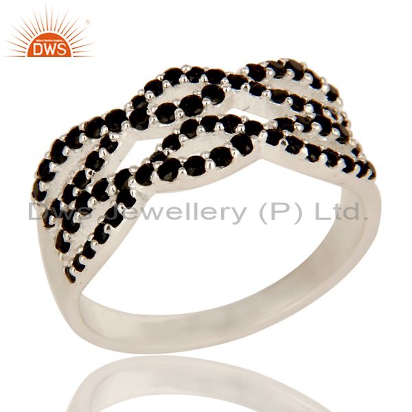 Designer Sterling Silver Natural Black Spinel Cluster Infinity Engagement Ring