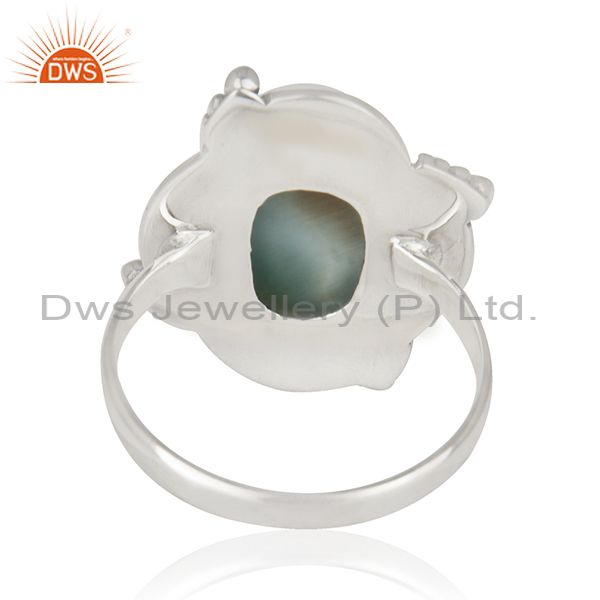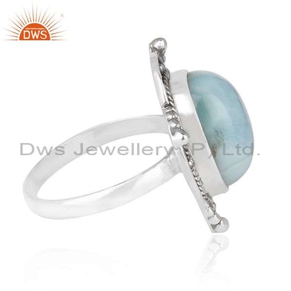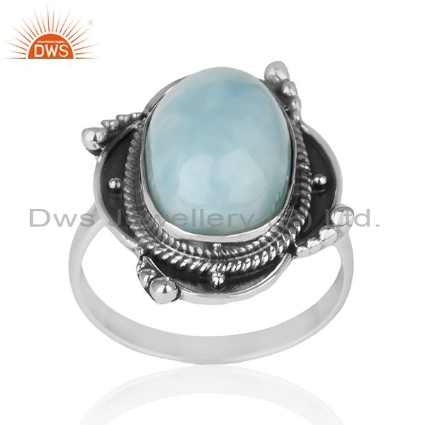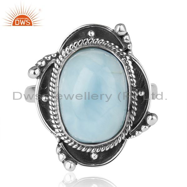Designer Sterling Silver Oxidized Larimar Gemstone Statement Ring Supplier INDIA
