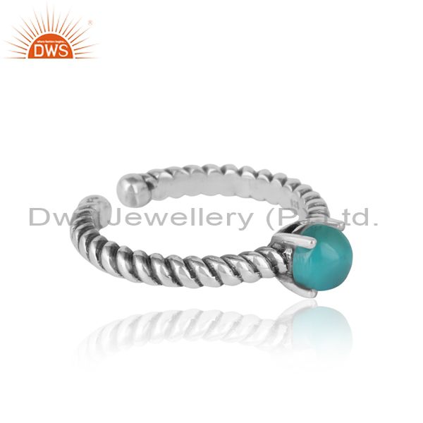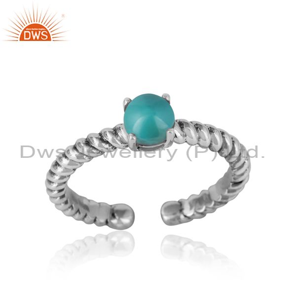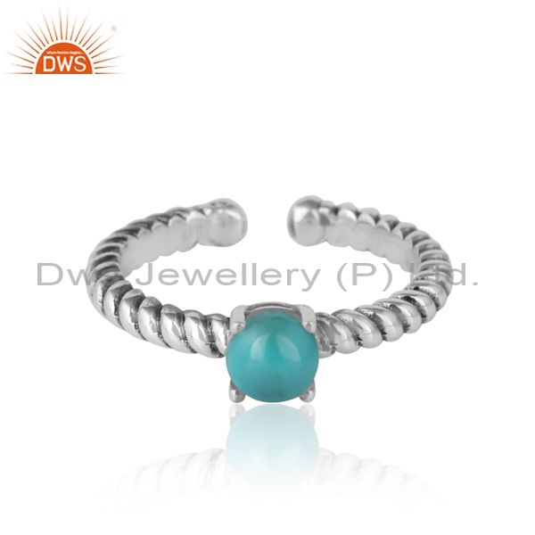 Designer Textured Arizona Turquoise Ring in Oxidised Silver 925