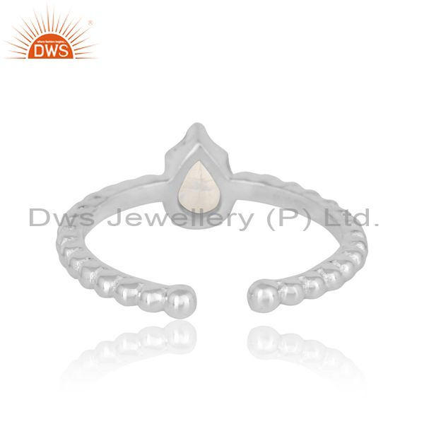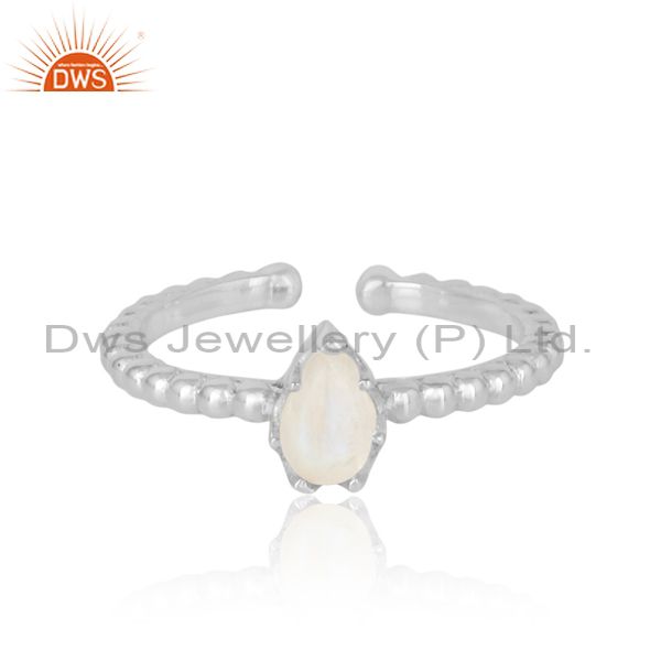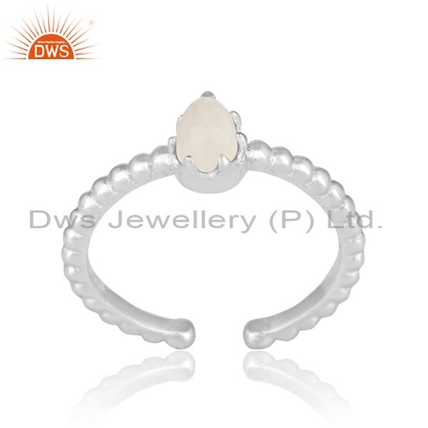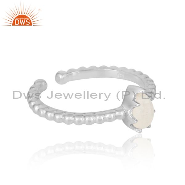 Designer Textured Dainty Sterling Silver Ring with Rainbow Moonstone