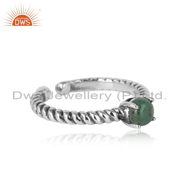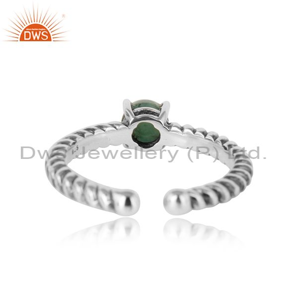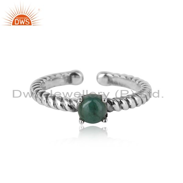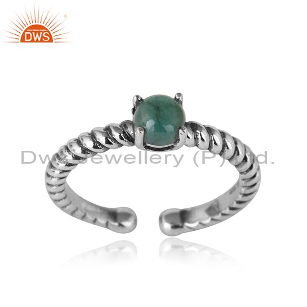 Designer Textured Emerald Ring in Oxidised Silver 925