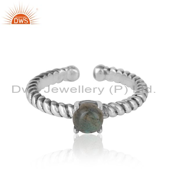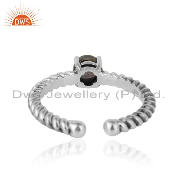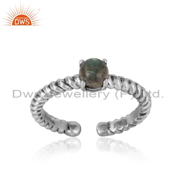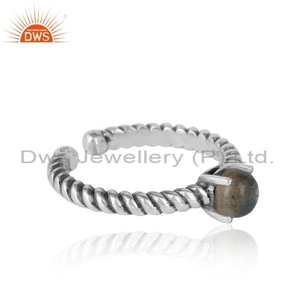 Designer Textured Labradorite Ring in Oxidised Silver 925