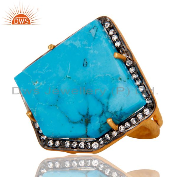 Designer Turquoise Ring Crafted In Sterling Silver With Gold Plated