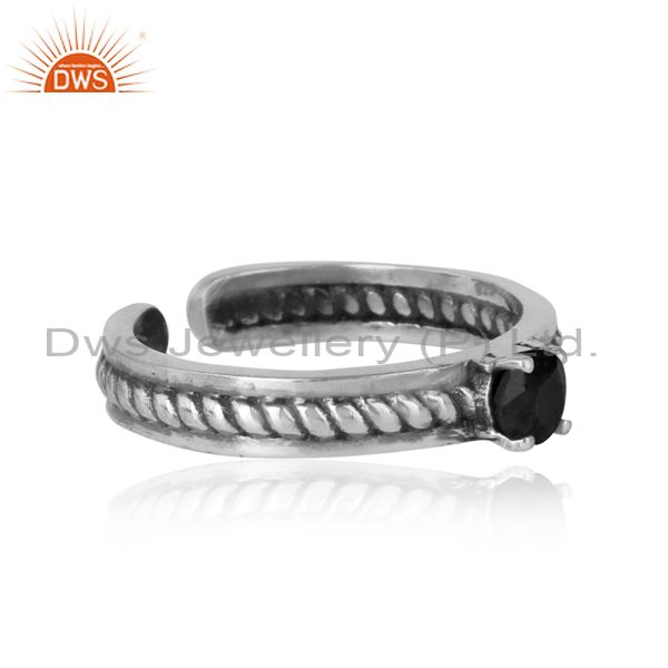 Designer Twisted Ring in Oxidized Silver 925 and Black Onyx