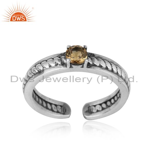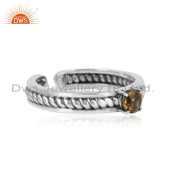 Designer Twisted Ring in Oxidized Silver 925 and Citrine