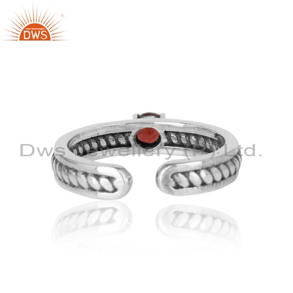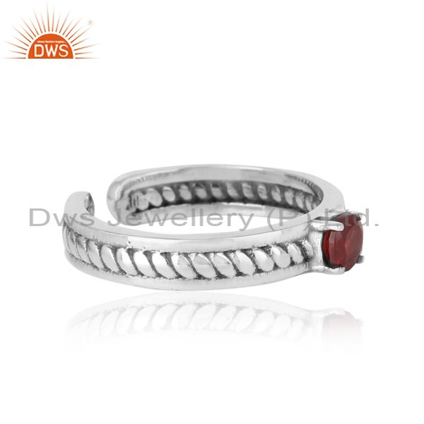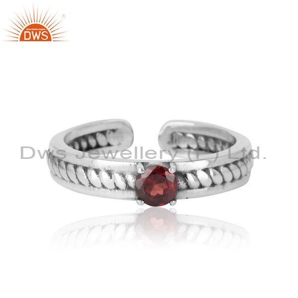Designer Twisted Ring in Oxidized Silver 925 and Garnet