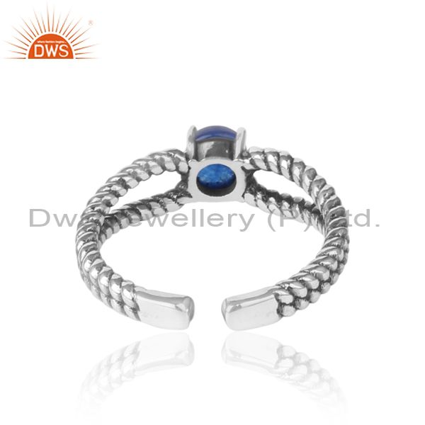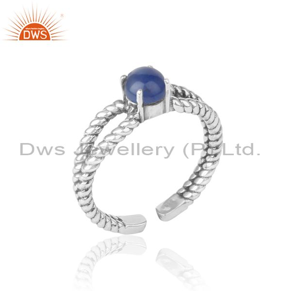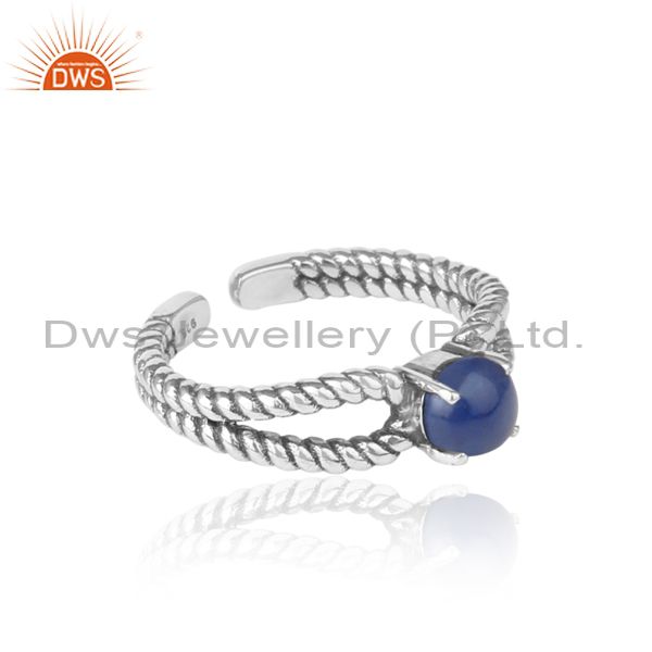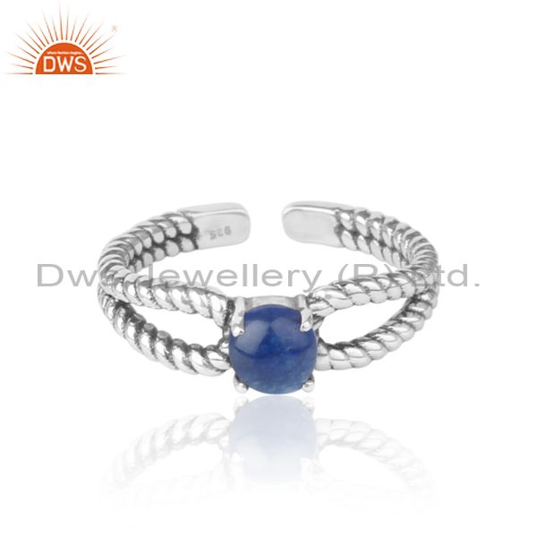 Designer Twisted Ring in Oxidized Silver 925 with Blue Aventurine