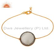 Designer White Moonstone Prong Gold Plated Sterling Silver Ring With Accent Cz