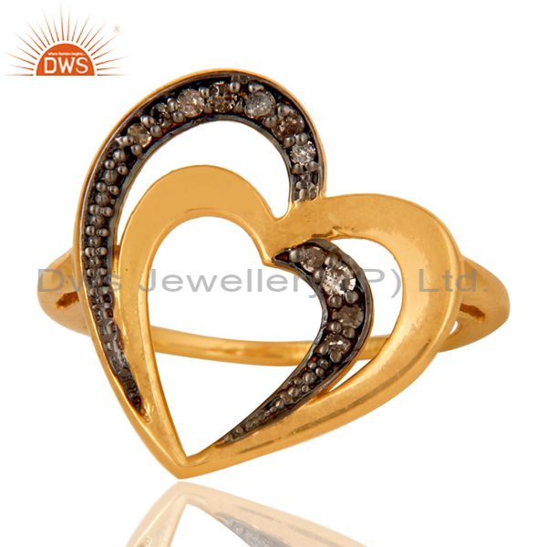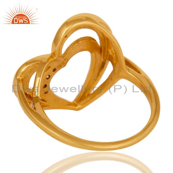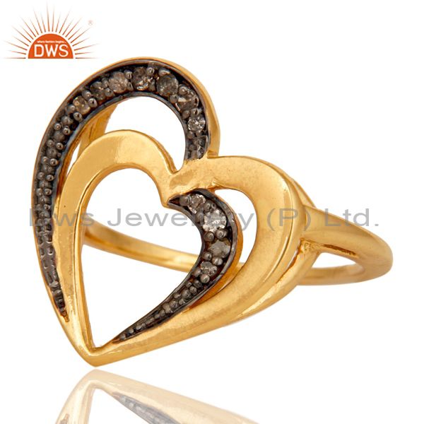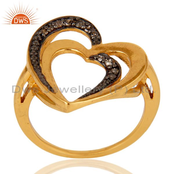 Diamond 18K Gold Plated Heart Shape Sterling Silver Ring Love Jewelry