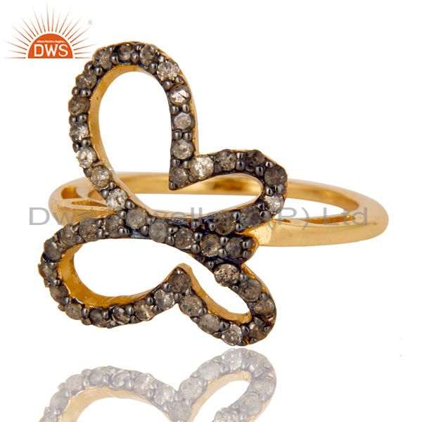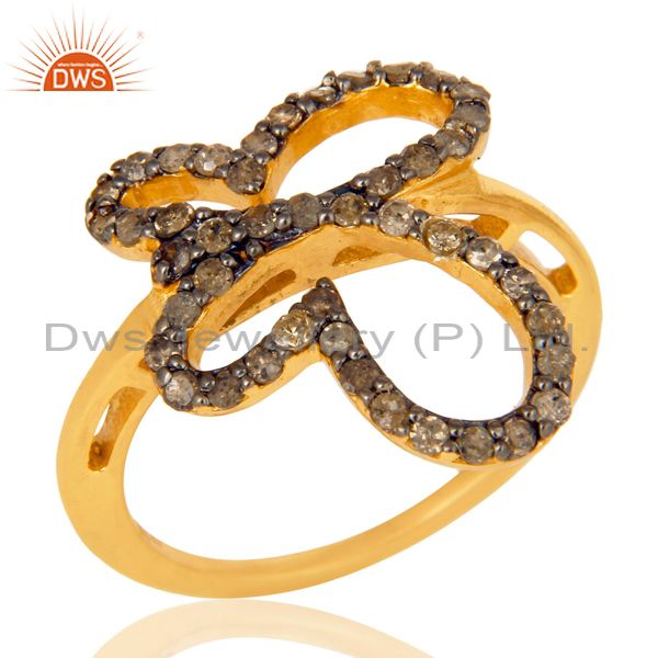 Diamond And 18K Gold Plated Sterling Silver Butterfly Design Ring