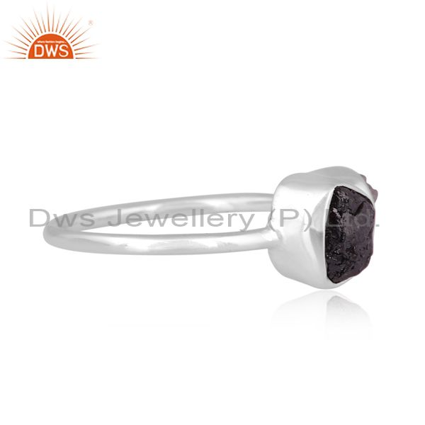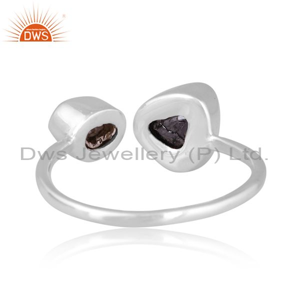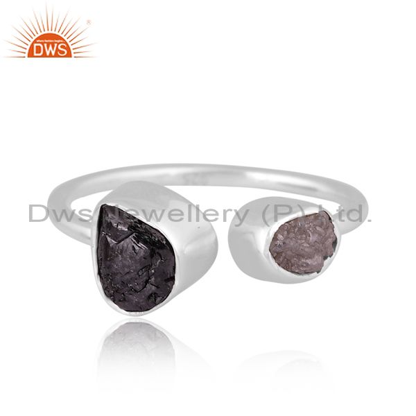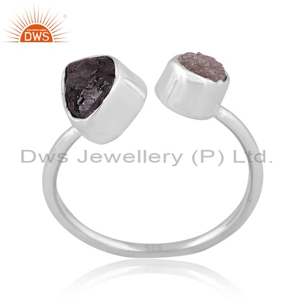 Diamond And Black Diamond Set Fine Sterling Silver Open Ring