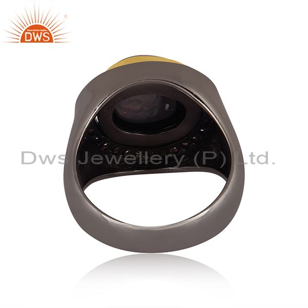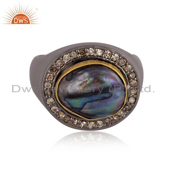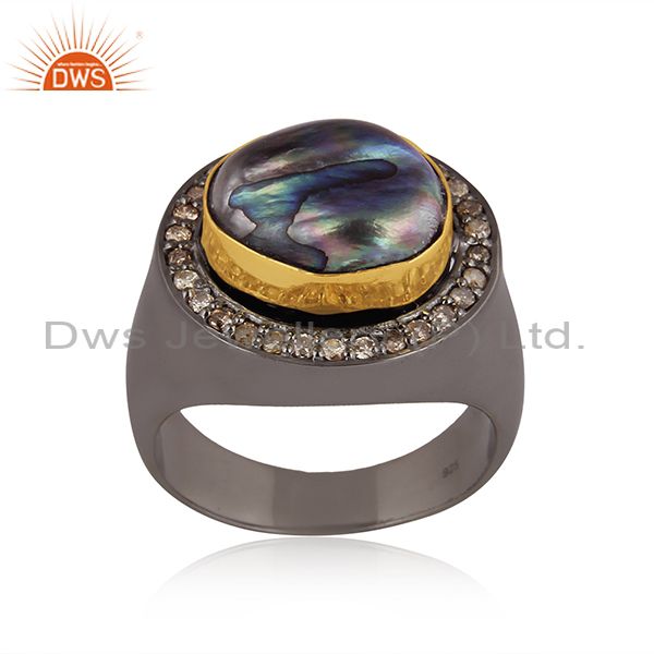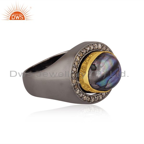 Diamond And Gray Pearl Beads Set Gold, Black On Silver Ring